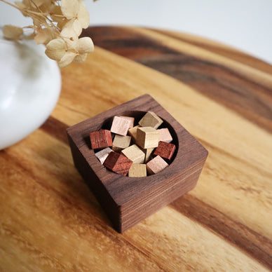Crafted from sustainably sourced walnut wood, this diffuser features a square base that nestles wooden scent cubes in the indented center. It gives you the option and ease to replace the scents immediately by just replacing the scent cubes or lava beads.